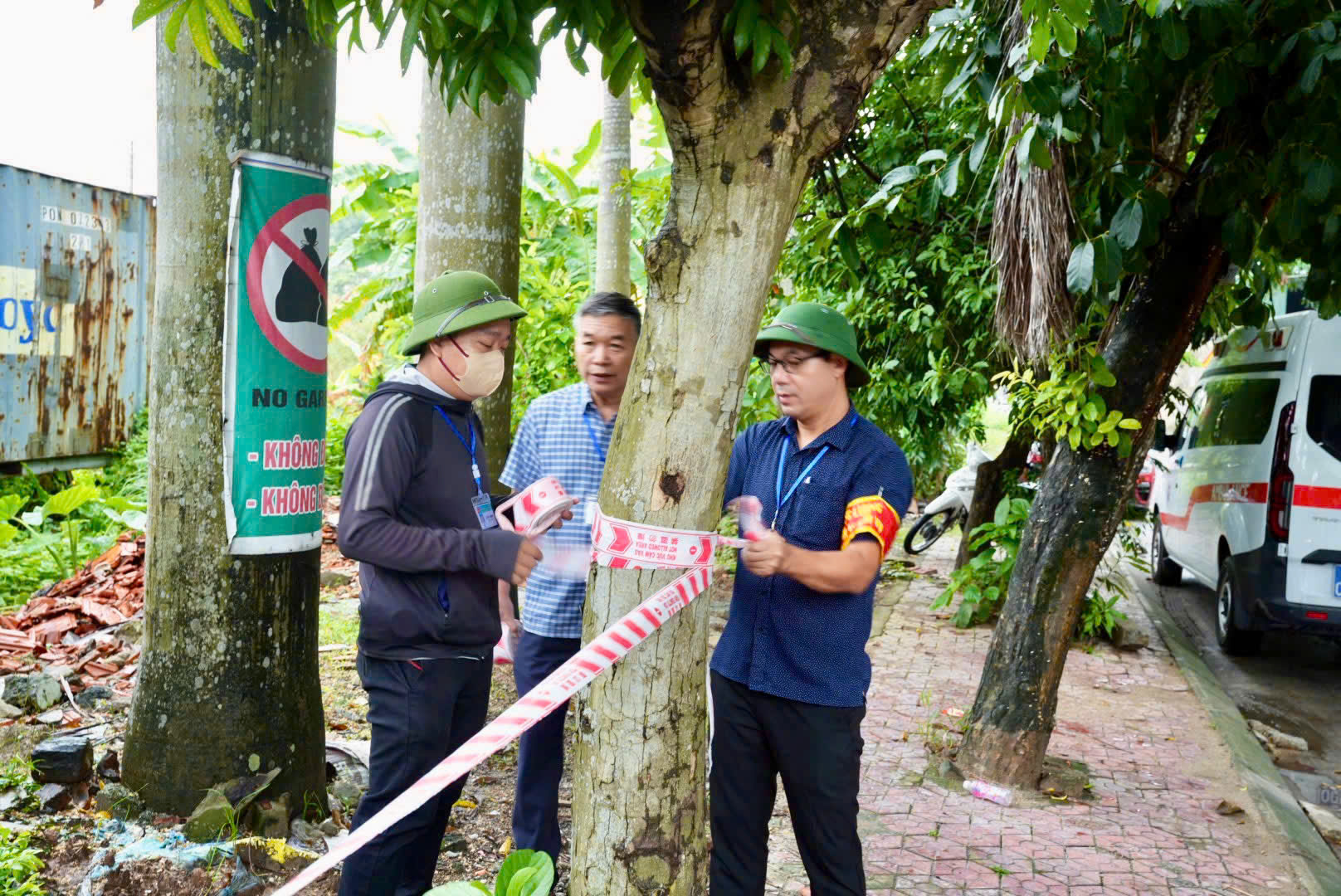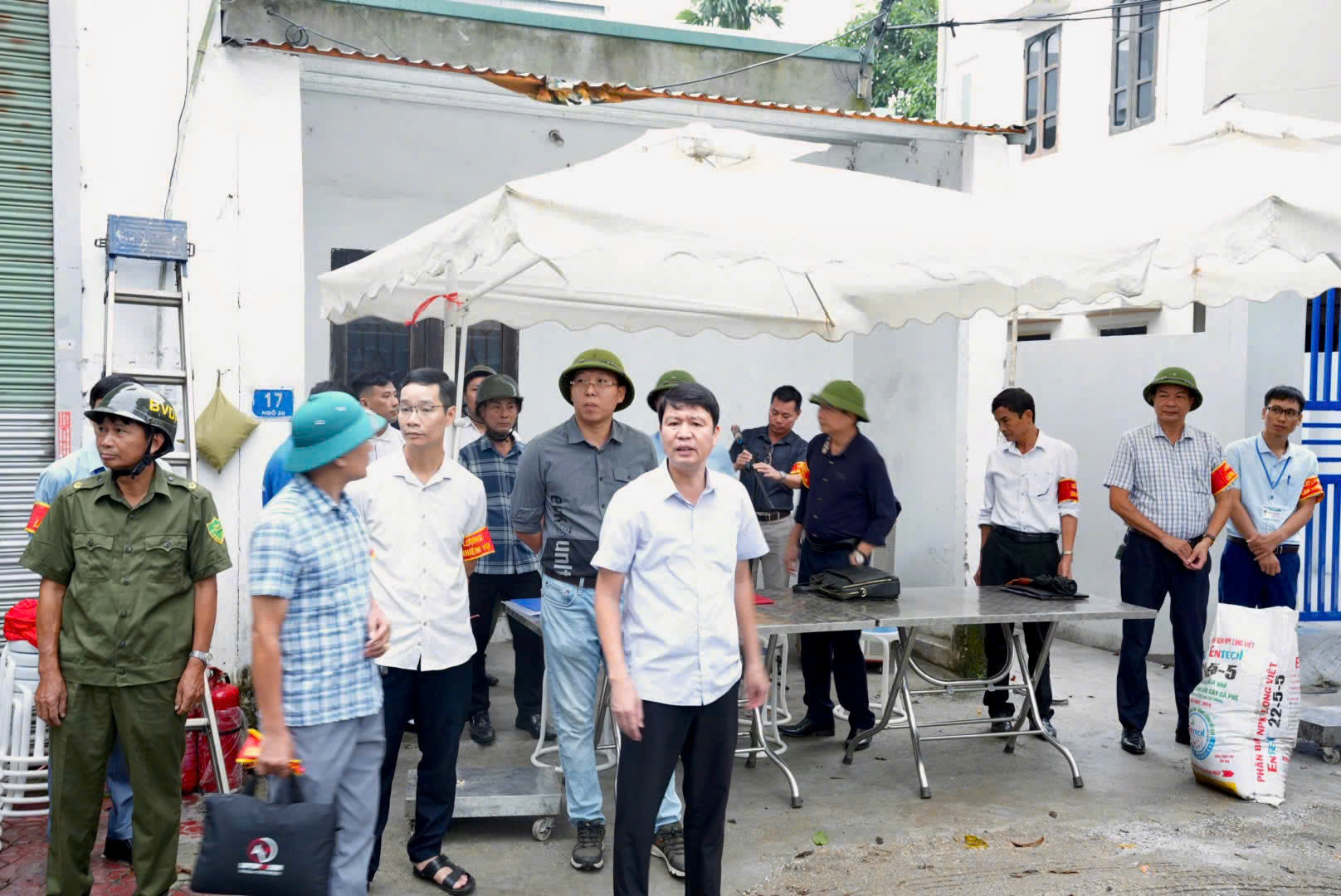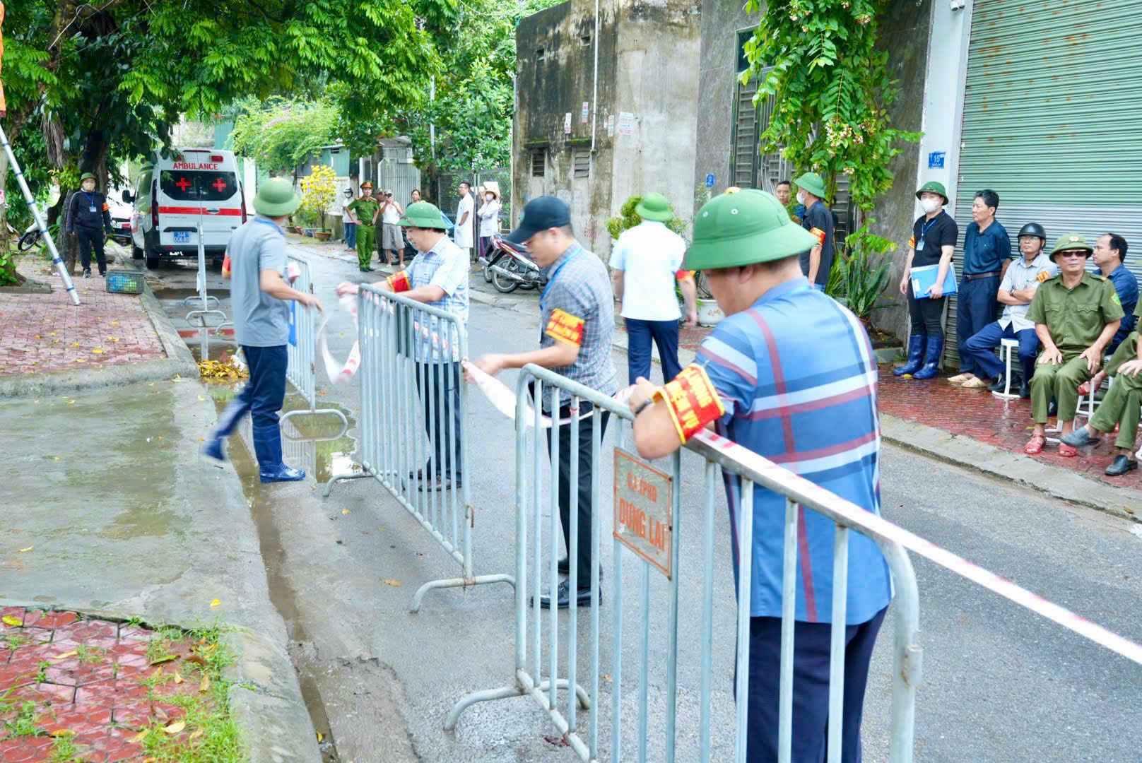 Các lực lượng thực hiện nhiệm vụ tại hiện trường theo sự chỉ đạo của lãnh đạo UBND phường