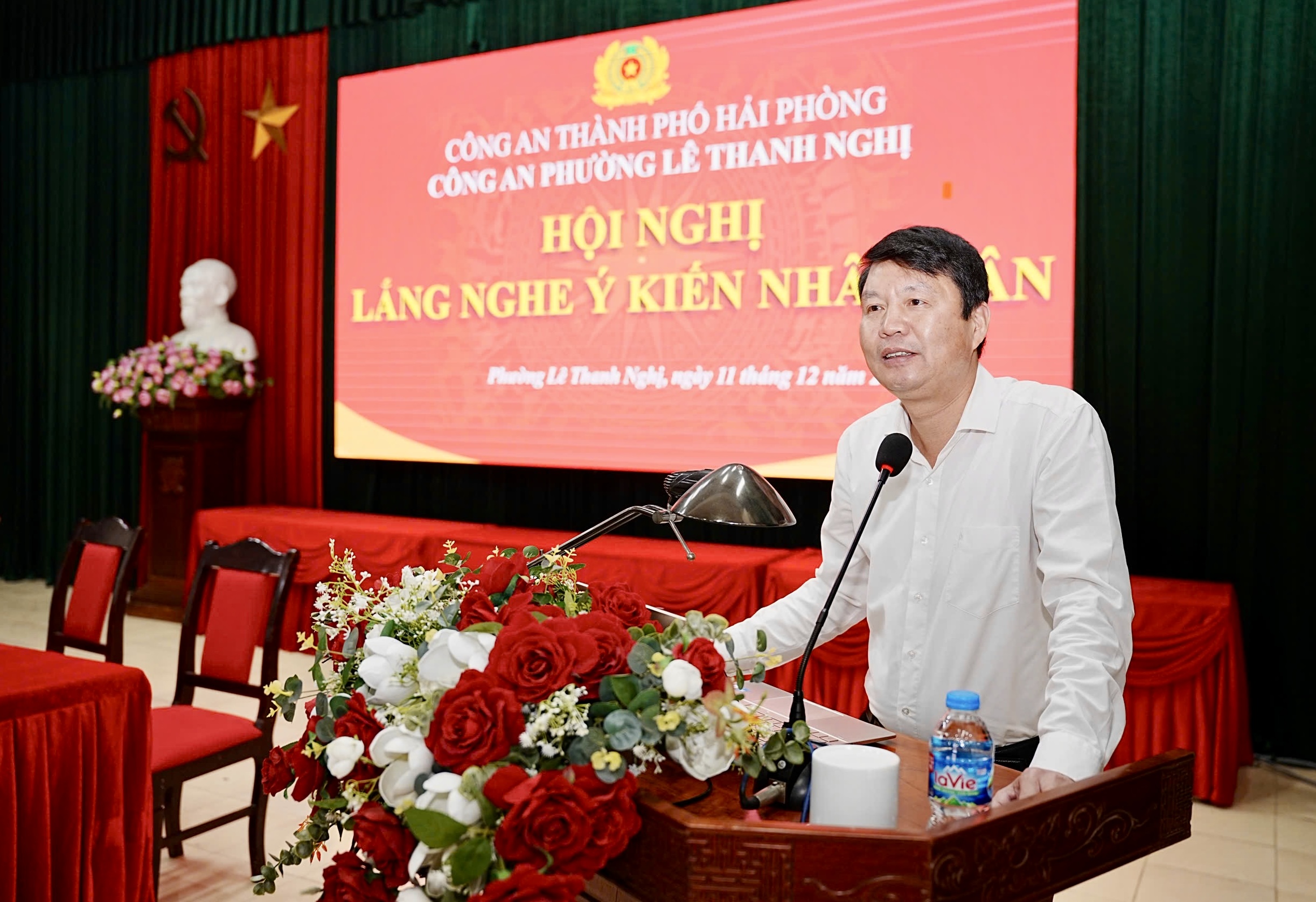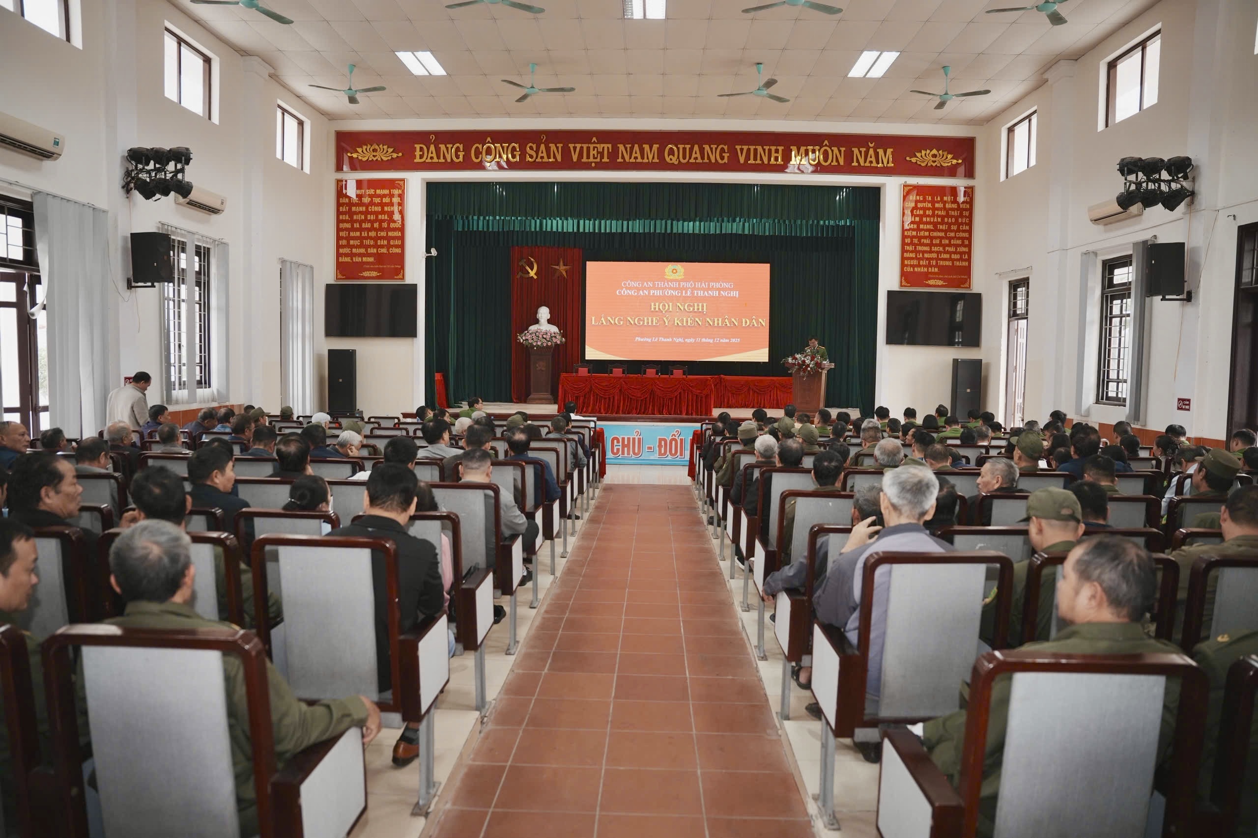 Thực hiện Kế hoạch số 6352/KH-CAHP-PV01 của Công an thành phố Hải Phòng, chiều 11/12/2025, Công an phường Lê Thanh Nghị tổ chức diễn đàn “Lực lượng Công an lắng nghe ý kiến nhân dân tại địa bàn cơ sở” tại Trụ sở Đảng ủy – HĐND – UBND phường.