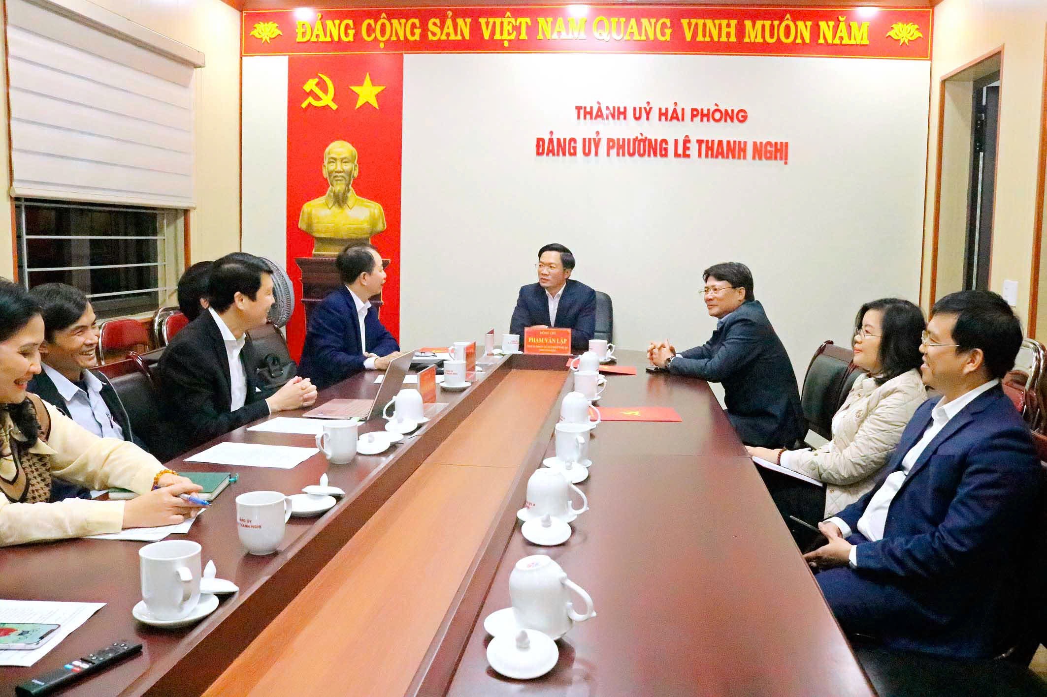 ĐỒNG CHÍ PHẠM VĂN LẬP LÀM VIỆC VỚI THƯỜNG TRỰC ĐẢNG ỦY PHƯỜNG LÊ THANH NGHỊ VỀ THỰC HIỆN CHÍNH QUYỀN ĐỊA PHƯƠNG 2 CẤP