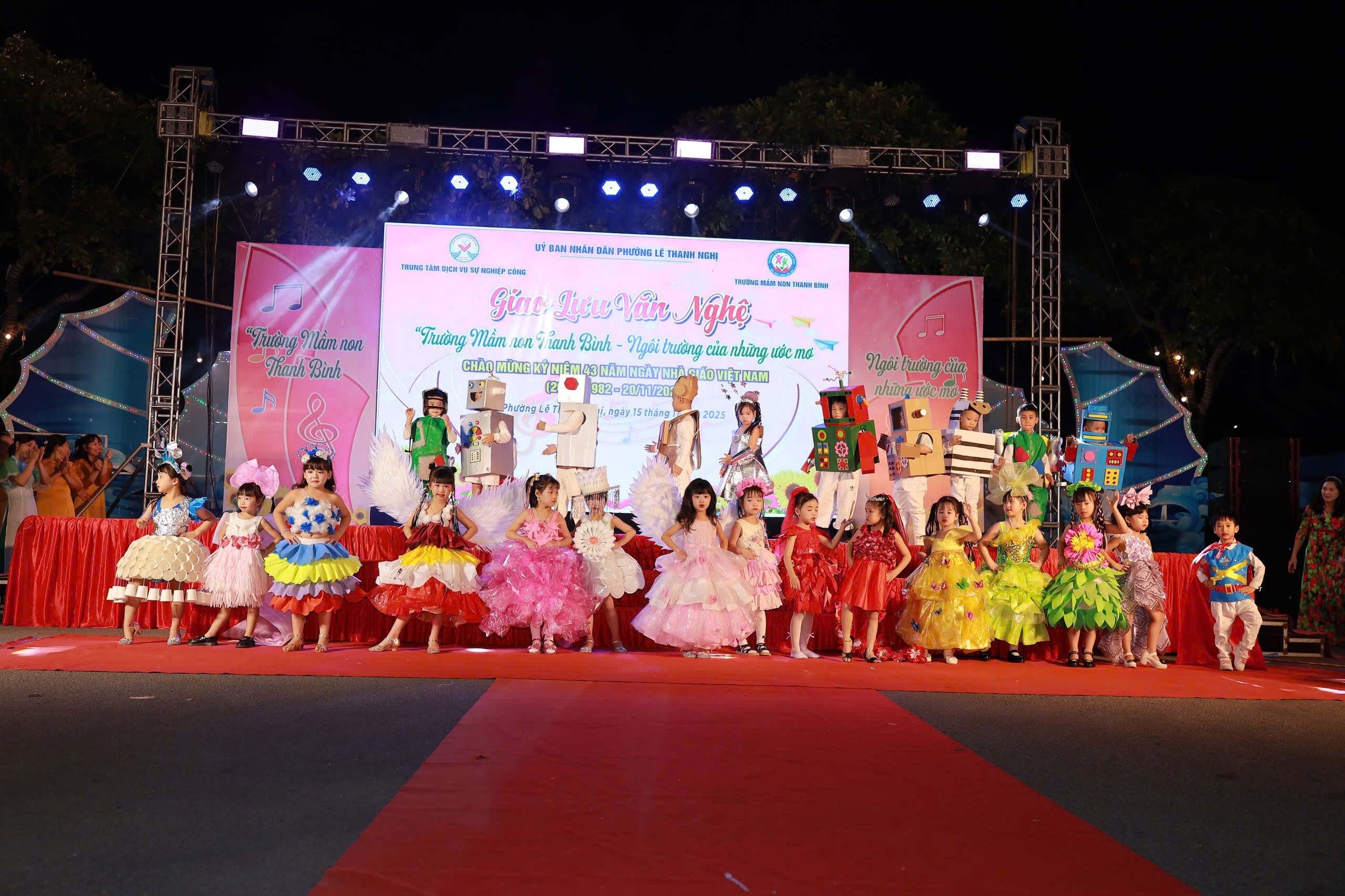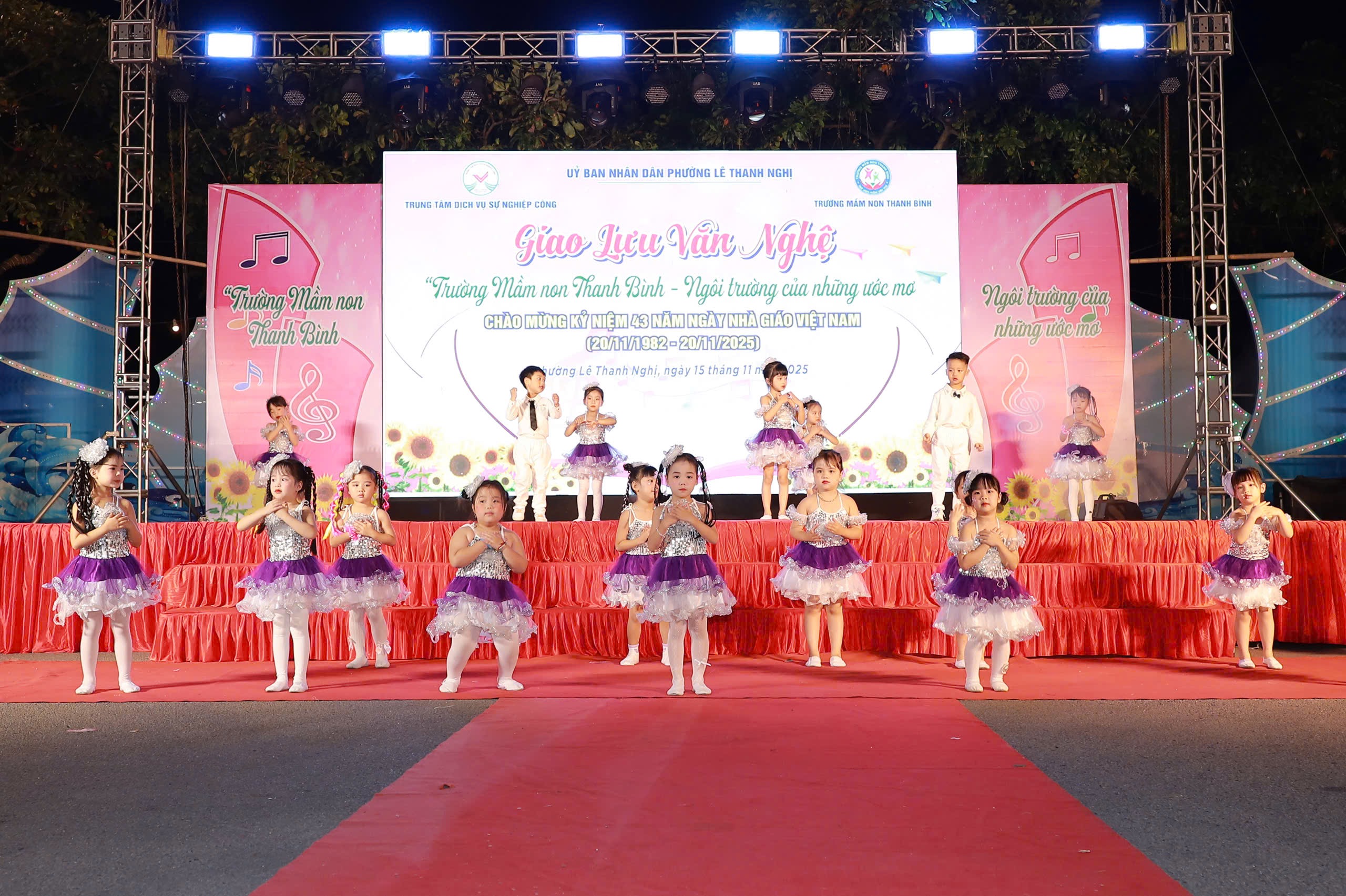 Thực hiện Kế hoạch của UBND phường Lê Thanh Nghị. Ngày 15/11/2025, tại không gian phố đi bộ Bạch Đằng, Trung tâm Dịch vụ Sự nghiệp công phường Lê Thanh Nghị phối hợp với Trường Mầm non Thanh Bình tổ chức chương trình giao lưu văn nghệ với chủ đề “Trường Mầm non Thanh Bình – Ngôi trường của những ước mơ”, thiết thực chào mừng kỷ niệm 43 năm Ngày Nhà giáo Việt Nam (20/11/1982 – 20/11/2025).