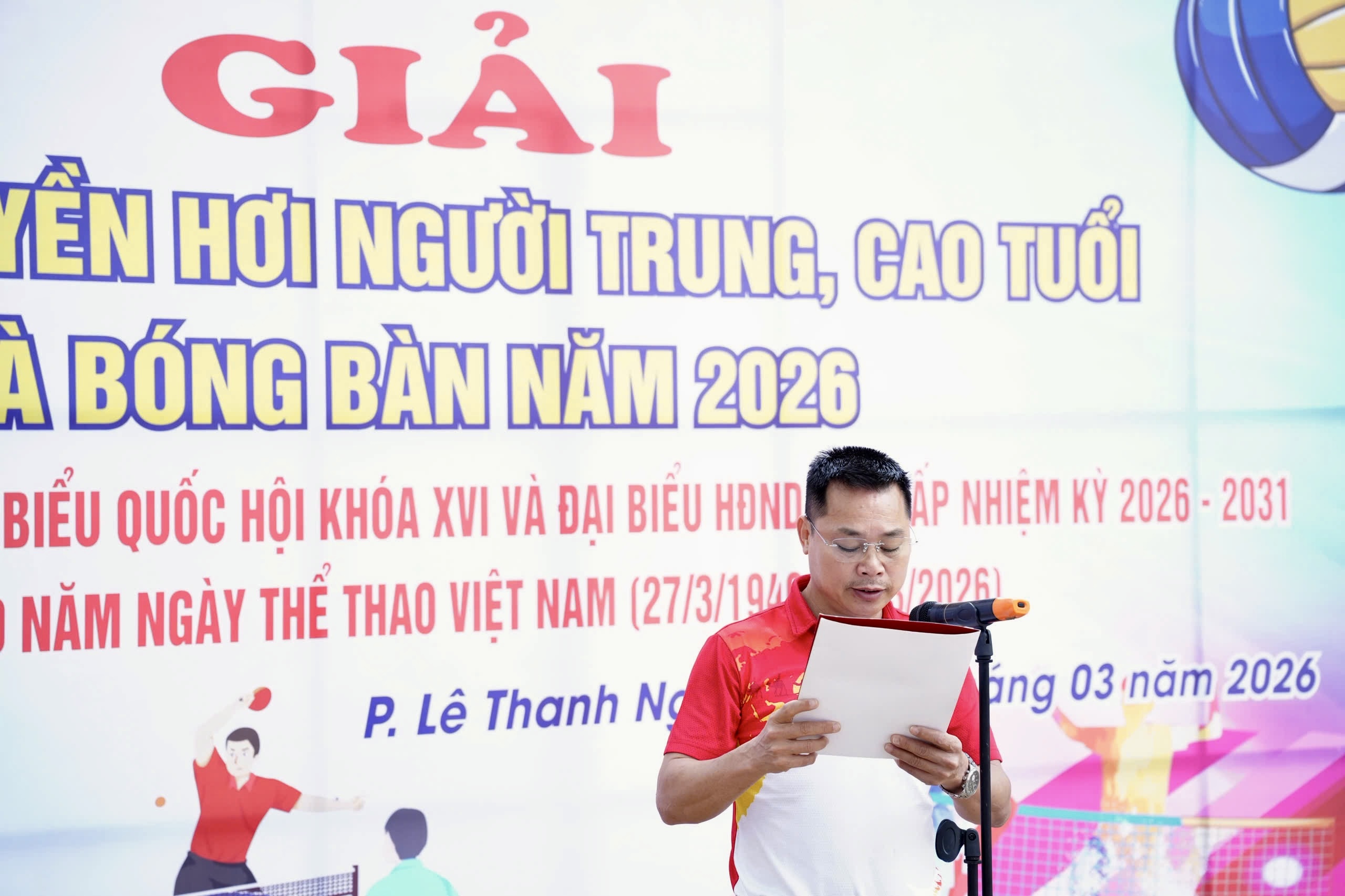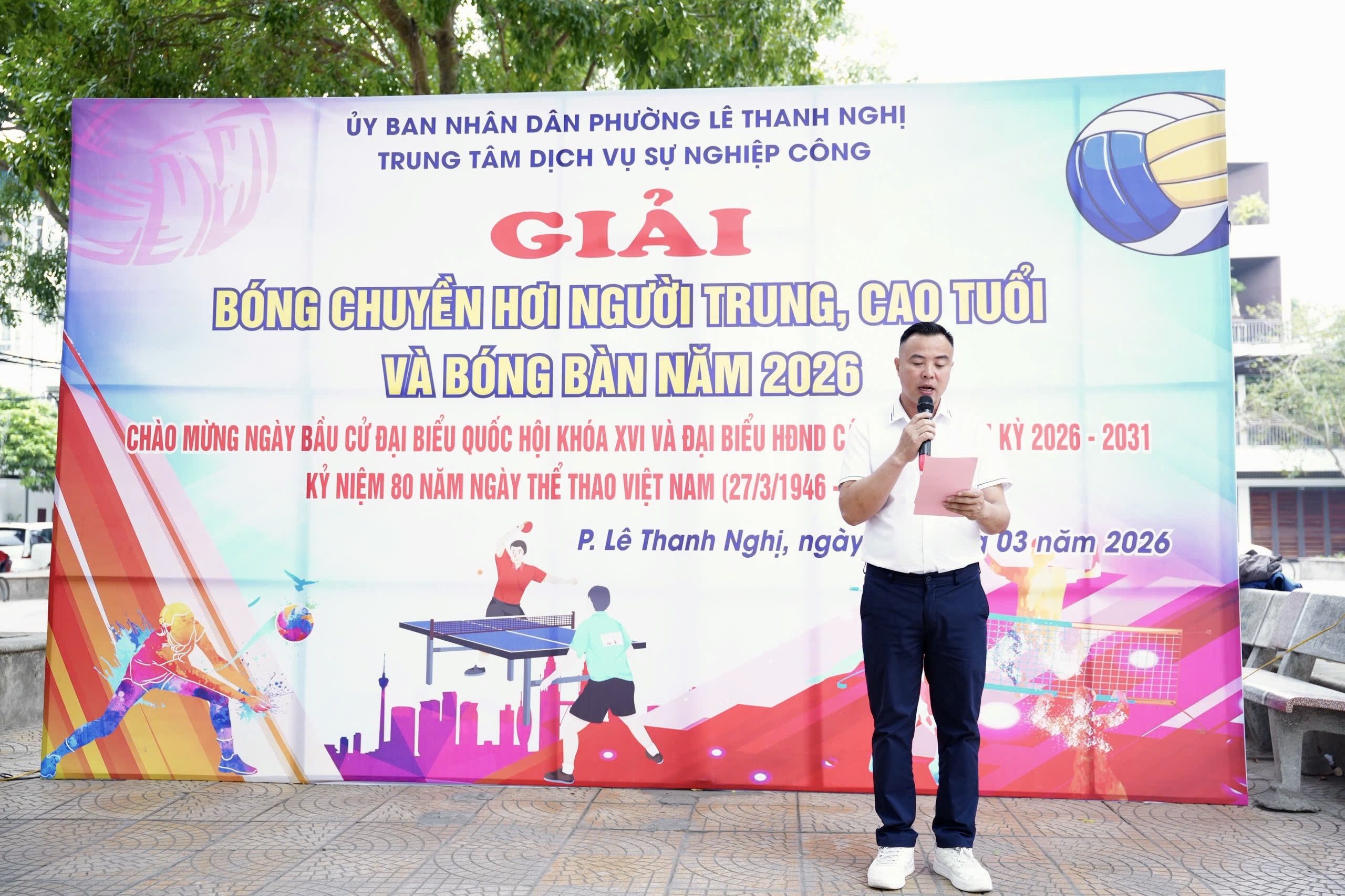 Thiết thực chào mừng cuộc bầu cử đại biểu Quốc hội khóa XVI và đại biểu Hội đồng nhân dân các cấp nhiệm kỳ 2026 – 2031; đồng thời hướng tới kỷ niệm 80 năm Ngày Thể thao Việt Nam (27/3/1946 – 27/3/2026), sáng ngày 14/3/2026, Trung tâm Dịch vụ sự nghiệp công phường Lê Thanh Nghị tổ chức Khai mạc Giải bóng chuyền hơi người trung, cao tuổi và bóng bàn phường Lê Thanh Nghị năm 2026.